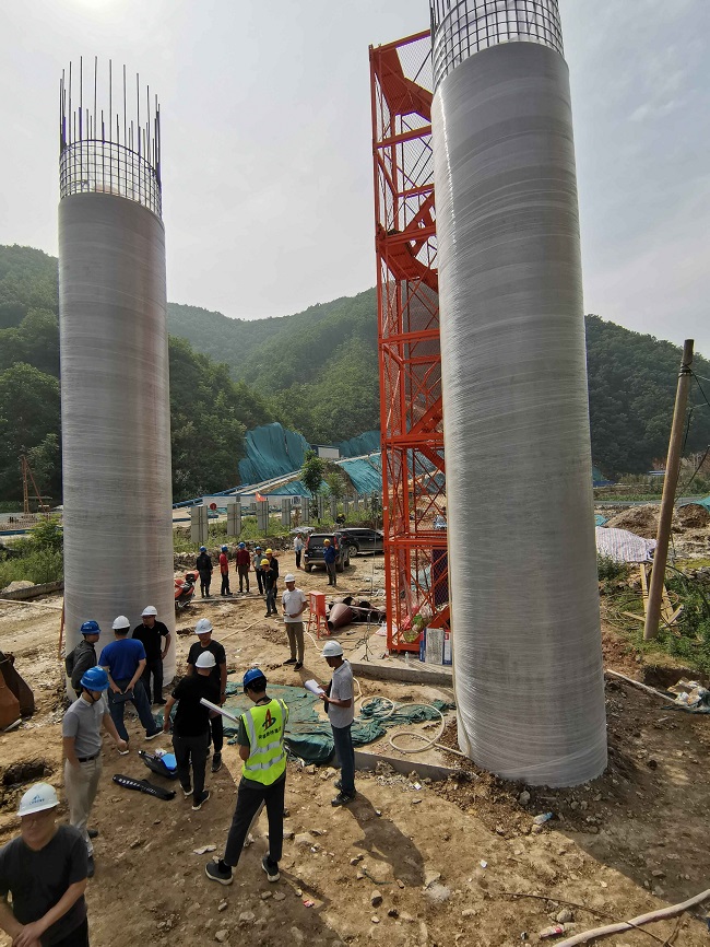 本次完成的首件工程立柱为九沟特大桥7-1#墩柱,墩柱高28.362m,柱径1.8m,浇筑时长共计6小时35分钟。九沟特大桥是栾卢高速03标的重点控制型工程,也是合同段内四座特大桥中最长的桥梁。桥梁立柱设计202根,分别在起始端接北坡隧道和表尾路基连接段。首根立柱桩的顺利浇筑对后续施工具有积极的指导意义。