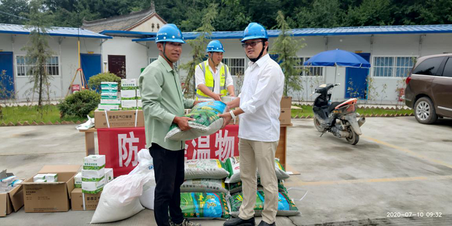 项目班子成员为一线生产人员送去了项目的关怀,项目部集中采购的藿香正气口服液、绿豆、清凉油、仁丹丸等防暑降温物品发放到了每一位员工的手上。在现场,李虎与生产人员进行了亲切的交流并嘱咐大家:“夏季高温炎热出汗较多,体内盐分减少,体内的渗透压会失去平衡,容易出现中暑的情况,提醒大家要多喝水、保持充足的睡眠、随身携带好防暑药物并做好防晒措施,提高安全意识,做好安全度夏的准备工作。”