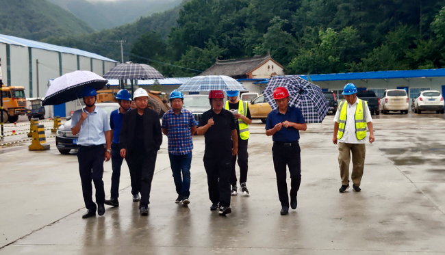 7月14日下午,河南省收费还贷中心工程处副主任韩奕波带队前往栾卢高速3标进行汛期安全生产专项督导检查。
