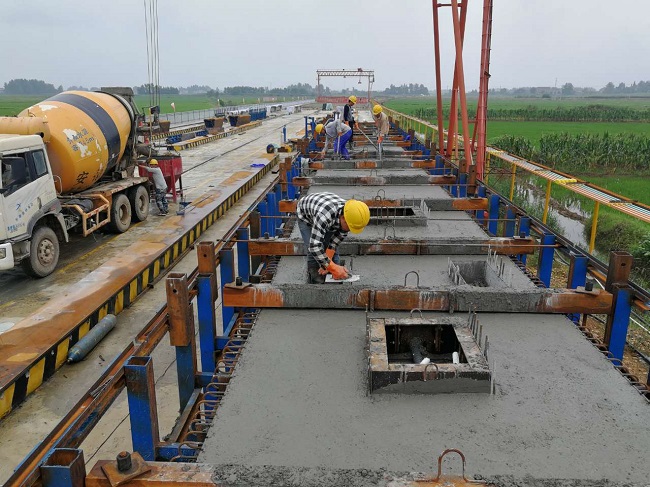 7月20日,G347安九二期PPP项目梁场首片30米预制箱梁顺利完成浇筑,拉开了项目桥梁预制梁施工的帷幕。