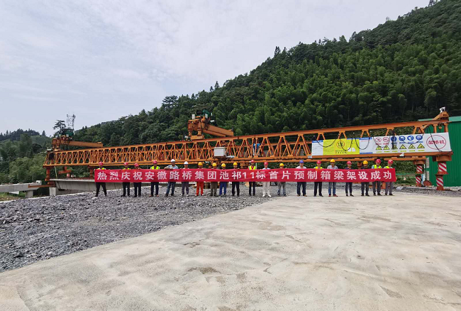 7月29日上午,池祁高速11标新溪2号大桥首片30m箱梁稳稳落在第一跨墩台上,标志着池祁高速公路全线第一片箱梁圆满架设完成,箱梁安装作业全面展开,为项目全年节点目标的实现奠定了坚实的基础。