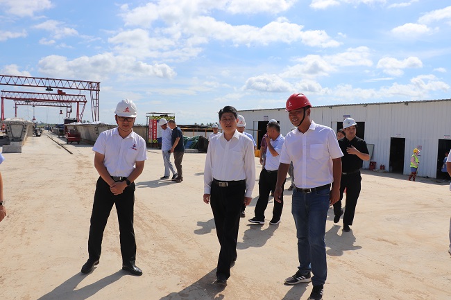 在项目梁场,霍辉一行亲切看望了奋战在一线的工人,为他们送去了八宝粥、矿泉水、毛巾等防暑用品,感谢他们在第一线战高温、斗酷暑,为G347PPP项目和望江交通基础设施建设辛勤工作,嘱咐大家要注意防暑降温,保重身体。