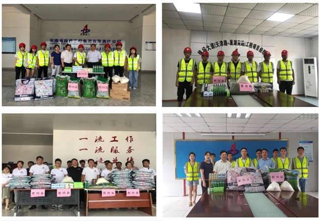 近日来,高温天气再度来袭,为切实做好一线职工夏季安全生产和防暑降温工作,一分公司工会开展“送清凉”活动。8月3日-13日,一分公司领导班子带队赴繁华大道、无岳高速、利辛PPP、玉龙路、G329、锦绣大道、滁州恒兴路等项目慰问奋战在施工一线的职工,把清凉送到职工手中。
