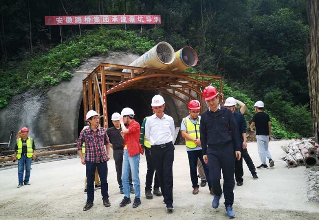 王宏祥对项目蔡坑隧道导坑及蔡坑隧道出口端等工点的施工进度进行了查看,并询问隧道围岩占比及每天的进尺深度;随后听取了项目负责人关于现场安全生产、文明施工、生产进度等情况的汇报。王宏祥对黄千高速02标项目正式开工以来的各项工作给予肯定与鼓励,并对项目部提出三点要求:一是重点加大隧道施工的安全管理,要建立隧道门禁制度,加强门禁管理,确保设备及人员进出得到有效管控;二是要求项目部在施工中应加强对围岩及支护的检查与监测,制定应急预案、配备救援装备;三是要定期对人员进行安全教育,避免违章指挥及冒险作业。