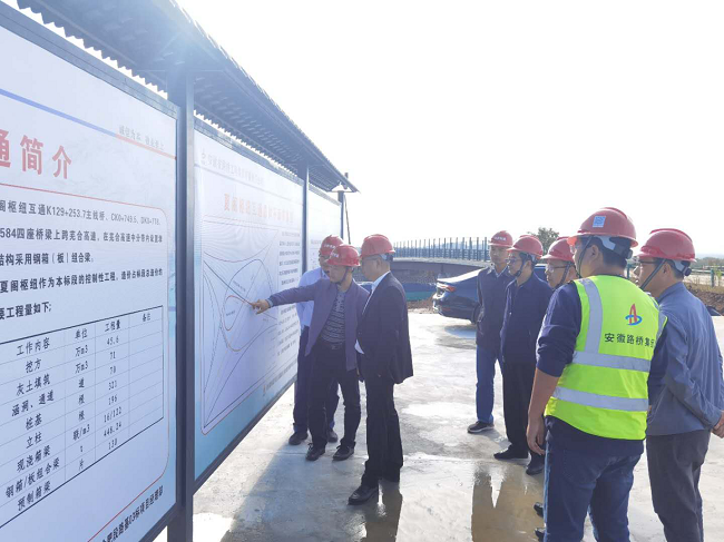 10月9日下午,合肥市交通运输局总工程师韩光辉一行赴明巢高速合肥段路基03标项目调研。合肥交投控股董事长黄惠民、总经理李昊、副总经理查明华等参加调研。