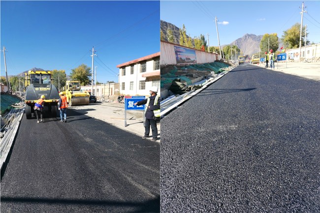 10月20日上午,山南市贡布路扩宽工程施工现场,沥青摊铺机缓慢、平稳、匀速前进,项目正式进入路面沥青摊铺施工阶段。