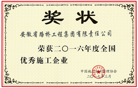 近日,中国施工企业管理协会在厦门召开会议,公布了2016年度“全国优秀施工企业”、“全国工程建设优秀项目经理” 评选结果,我公司荣获2016年度“全国优秀施工企业”,项目经理吕庆广荣获“全国工程建设优秀项目经理”称号。