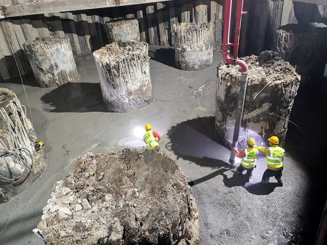14#墩基坑设计封底厚度2m,该分项工程属于超过一定规模的危险性较大的分部分项工程,为确保施工安全及质量,项目部编制了专项施工方案并经过了专家评审,施工前对全体作业人员进行技术培训和安全技术交底,施工过程中由技术人员全过程旁站检查,并设立专业监控小组,对围堰开挖过程中变形、内力情况进行日常监测。
