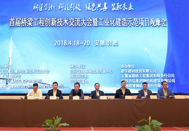 4月19日上午8点半,由中国交通运输协会新技术促进分会联合安徽省公路学会等四家单位共同主办,安徽省路桥工程集团有限责任公司等单位协办,北京国铁路网信息咨询中心、路讯杂志社、中华铁道网承办的“首届桥梁工程创新技术交流大会暨工业化建造示范项目观摩会”在合肥隆重开幕。