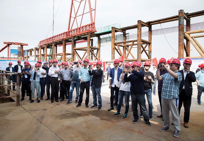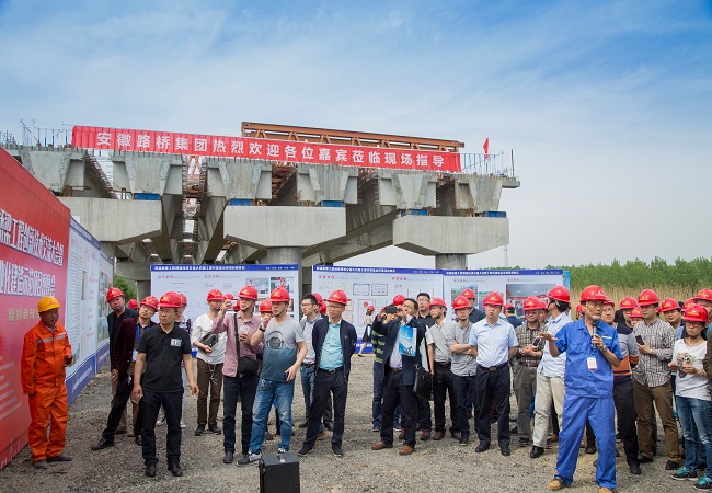 20日下午2:00,与会专家学者及代表一行乘车前往安徽路桥集团合安改扩建01标中派河大桥施工现场观摩。公司领导班子、工程管理部、总师室、设计院、合安改扩建01标项目接待了观摩团一行。项目负责人向观摩团详细介绍了中派河大桥设计理念、施工重难点、施工工艺、科技创新、安全质量管理等内容。观摩团在参观完施工现场后,对于中派河大桥的施工及我公司管理水平给予高度评价。