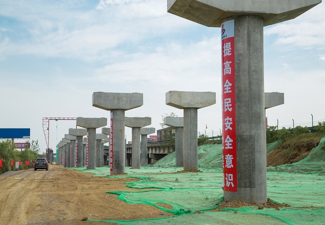 据了解,合安改扩建01标中派河大桥是国内首个装配式T型桥墩及大直径桩墩一体化技术项目,也是安徽省工业化建造示范项目。大桥全长1846米(不含桥台),共有147根预制墩柱和147个现浇承台,每个桥墩共3组,北引桥75根,南引桥72根。预制墩柱设计采用空心薄壁高强墩,桩下部设置凹槽,以便和承台连接,引桥设计墩高4-14.5米。主桥安装由两台80t龙门吊机和一台20t龙门吊机现场从边跨向中间对称安装,最终在跨中合拢。中派河大桥施工采用了BIM技术、大直径桩基施工、装配式桥梁施工技术、主桥钢桥面12mm超薄层铺装、沥青RAP热再生利用、改进型箱梁混凝土养护系统等多项新技术,科技含量颇高。项目建成后,安徽南北“大动脉”将更加畅通,对于完善区域路网结构、承接产业转移、促进经济社会发展具有重要的意义。