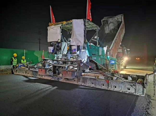 11月16日晚,繁华大道改造工程项目水稳试验段摊铺现场机声隆隆,运料机、摊铺机、压路机来回穿梭。为抓住晴好天气,施工现场挑灯夜战,历时近10小时,顺利完成水稳试验段摊铺工作,标志着我项目路面基层全面进入施工新阶段。