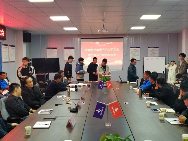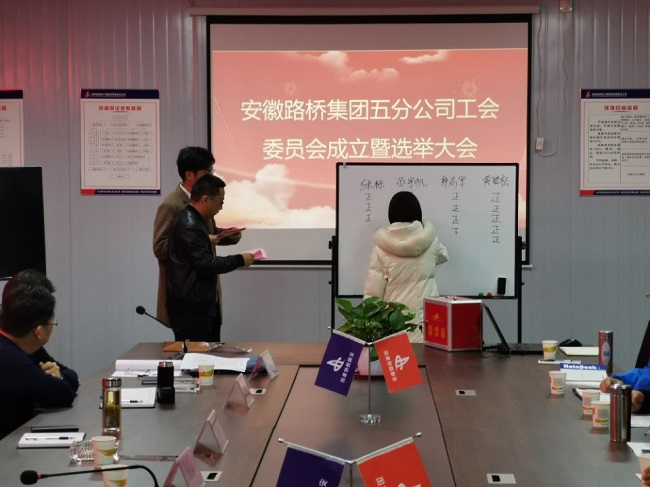会议宣读了《关于成立安徽省路桥工程集团有限责任公司第五分公司和设备租赁分公司工会委员会的通知》、《关于黄培松同志工作职务的建议》和《关于安徽路桥集团五分公司工会委员会委员候选人预备人选的批复》。在详细了解4位候选人基本情况后,通过无记名差额选举的方式选举产生安徽路桥集团五分公司第一届工会委员会的3名委员。