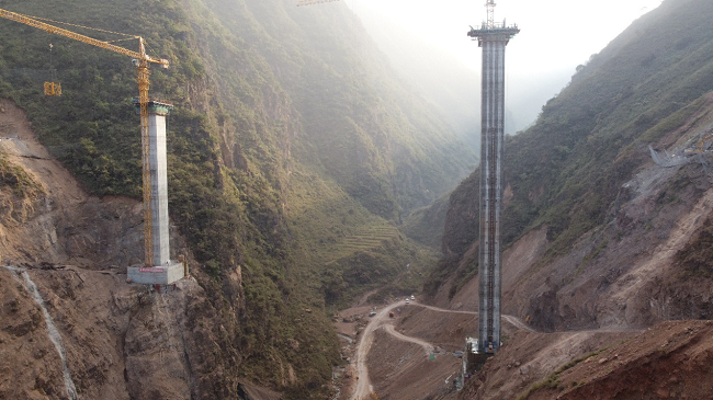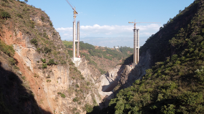 范毓庆一行查看了项目控制性工程支鲁2号沟大桥、葫白路保通工程等施工现场,登上90.5m高墩顶端,深入检查了项目塔吊、施工升降机、临时用电、施工机械等隐患高发区,并听取了项目工作汇报。