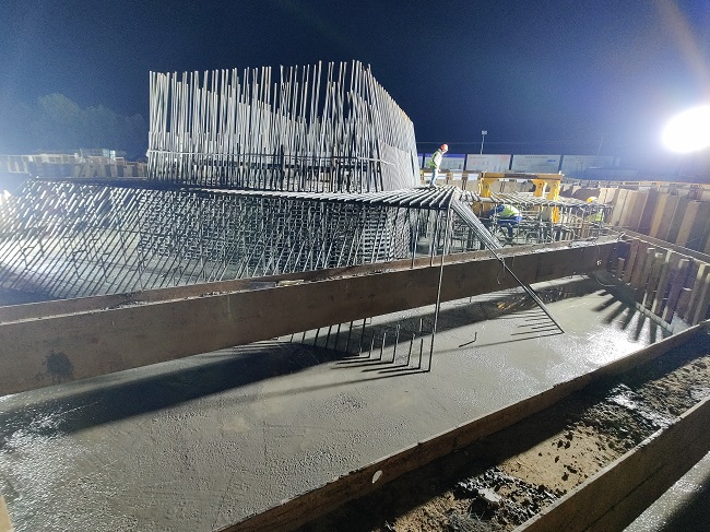 1月6日上午8点08分,G347PPP项目杨湾河特大桥主塔14#承台第二层开始浇筑。历时15个小时,2500方混凝土顺利注入大地,杨湾河特大桥主塔14#墩自此“站稳脚跟”,施工节点顺利完成,为大桥优质、安全地推进建设奠定了坚实的基础。