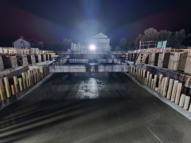 杨湾河特大桥是G347PPP项目的关键性工程,为确保顺利浇筑,项目部多次召开专题研讨会,严格实施工程首件认可制,严控基坑开挖、环切桩头、测量放样、施工垫层、钢筋安装、模板安装等环节,提前认真做好技术安全交底工作。在浇筑过程中,项目部严格执行领导带班制度,技术人员、试验人员对混凝土的配合比、振捣过程进行全过程把控,第二层浇筑完成标志着杨湾河特大桥主塔14#全面进入地上施工。