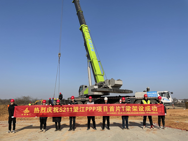1月12日下午,S211PPP项目首片预制T梁架设成功,标志着S211PPP项目桥梁架设施工正式拉开序幕。