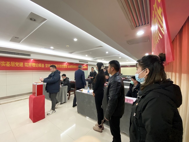 2021年1月25日下午,四分公司党总支换届选举党员大会在合肥隆重召开,会议由分公司党总支书记代声庆主持,分公司全体党员参加本次会议。公司党委书记、董事长盛明宏,纪委副书记、纪检监察室主任、党委工作部副主任徐慧玲应邀出席会议。