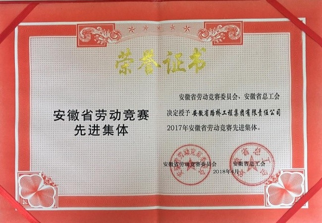 在“五一”国际劳动节即将到来之际,省委、省政府召开大会,隆重表彰全省各条战线上涌现出来的先进集体和先进个人。安徽省路桥工程集团有限责任公司喜获安徽省劳动竞赛“先进集体”称号。