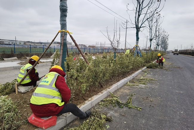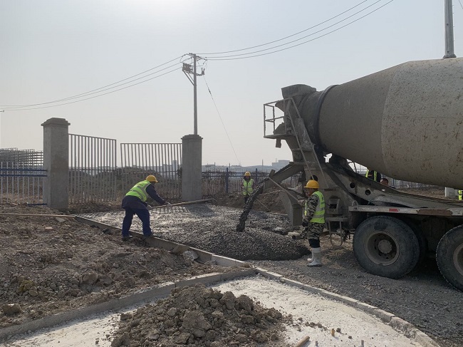 2021年是固镇县连徐路项目的收官之年。面对工期紧、任务重的局面,项目部员工迅速返岗,随即项目部组织召开了节后复工复产协调会,明确了各部门节后复工复产的各项准备工作。2月21日,项目各协作队伍开始进场施工。因节前项目已完成改路水稳施工,现主要进行改路混凝土浇筑及人行道土方整平、人行道绿化梧桐树栽种、侧分带绿化金边黄杨栽种。目前施工现场机械设备充足,配备挖掘机3台、铲车2台、洒水车2台,用于边坡修整、土方整平、绿植养护的工作。