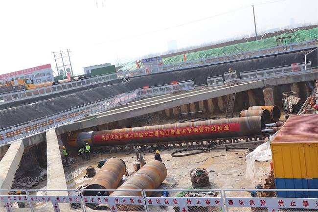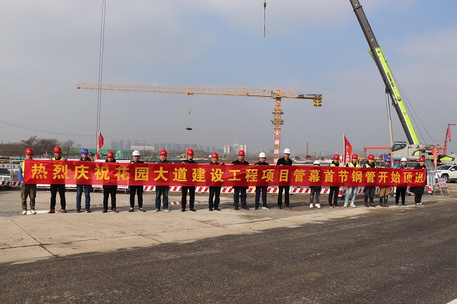 3月2日9时18分,安徽路桥集团花园大道(徽州大道-包河大道)建设工程隧道管幕首节钢管开始顶进。