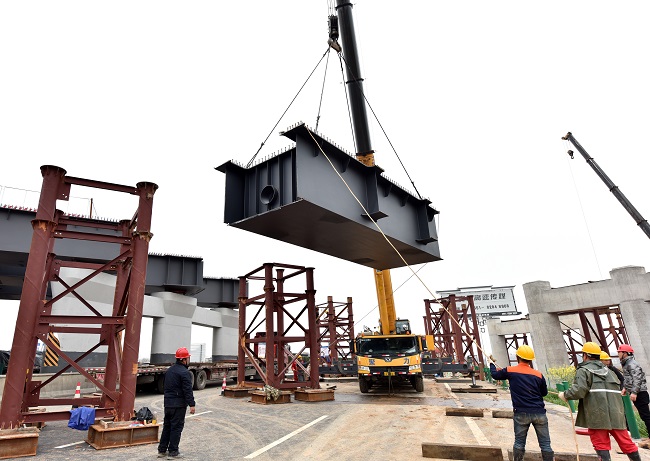 此次主线桥合肥侧共30节段钢箱梁,其中涉芜合高速部分18节段,计划4月底全部架设完成。接下来,项目部将加快其余钢箱梁的架设,在确保安全质量的前提下,高标准、高效率完成各项目标任务。