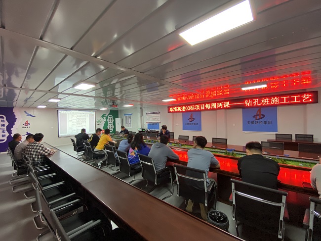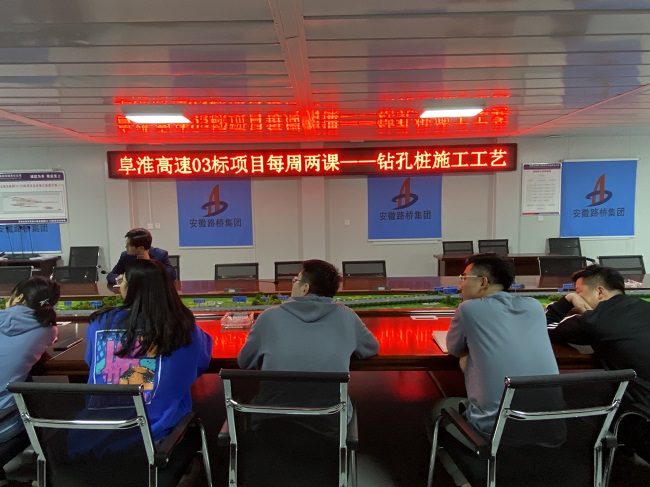 为培养一支技术水平高、业务能力强、职业素养好的员工队伍,经策划,阜淮高速03标项目开展“每周两课”系列授课活动。“每周两课”是以部门负责人为主讲人,讲解包括施工规范、先进工艺、质量标准、安全知识等方面知识活动的课程,旨在分享施工管理的经验与心得。