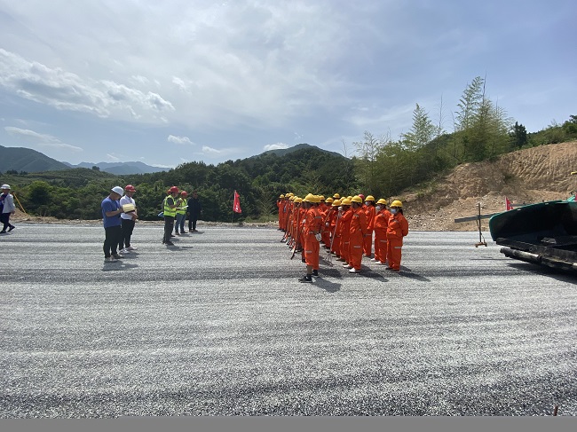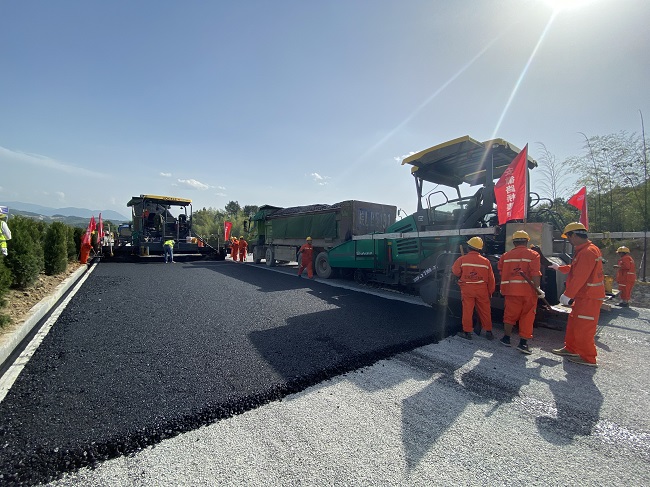 沥青试验段的摊铺,标志着芜黄路面02标拉开了路面层施工的序幕。项目部全体员工坚持团结奋进,充分发扬“白加黑”的实干精神,争分夺秒,确保施工生产有序推进,严格执行“县县通高速”攻坚方案要求,为顺利完成2021年底通车目标打下坚实基础。