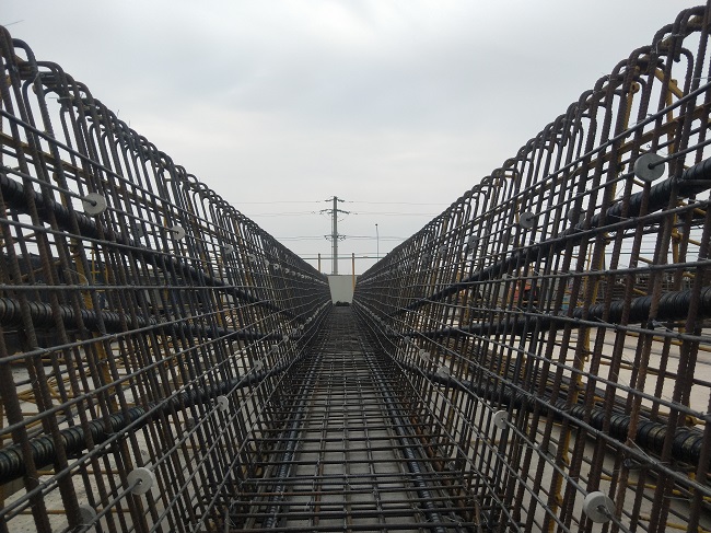 自2018年12月21日首片T梁预制成功以来,项目部根据工期要求与天气变化等因素,科学调整制定切实有效的施工组织计划,严格按照“高标准、严要求、高效率”的方针,促使梁板预制任务的顺利进行。在施工过程中,项目通过首件工程示范制、施工现场会等方式,坚持实施标准化、精细化施工。规范每片梁板的钢筋制作、模板安装、混凝土浇筑、养生、张拉等施工工艺,采用智能张拉、压浆等先进设备,确保每一道工序合乎标准。此外,预制梁场标准化建设和标准化施工也得到了多方认可,吸引多个兄弟项目部前来观摩交流。