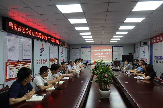 6月3日,明巢高速合肥段项目部召开了党员先锋号、工人先锋号、青年文明号“三号联创”动员大会。四分公司党总支书记、工会主席代声庆主持会议,项目部成员参加会议。公司党委委员、纪委书记王胜利及党工部、工会等人员应邀出席会议。