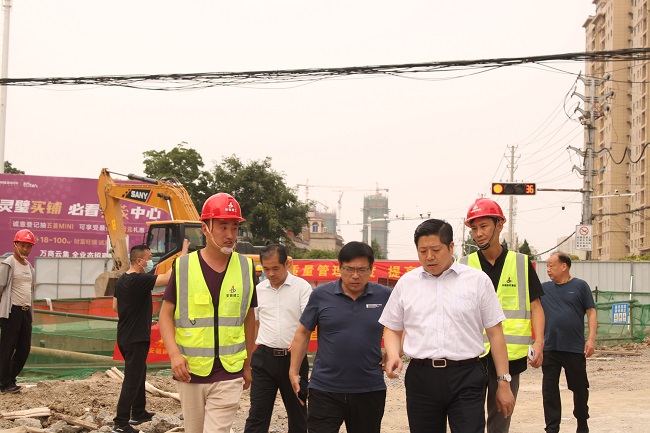 赵明一行先后前往唐河路暗涵、迎宾大道污水顶管、奇石大道等施工现场,听取了项目负责人对施工当前进度和存在问题的汇报。赵明一行对项目的施工进度和质量给予了肯定,并对下一步工作提出两点建议:一是要科学、规范施工,抢抓晴好天气,倒排工期,加快推进项目建设;二是抓实抓牢安全生产,防微杜渐,切实做到安全质量与进度形象并重。