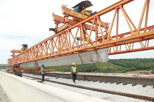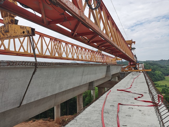 官田冲大桥作为全线最大的桥梁共4联17跨,全长510米,共需架梁136片,单片梁长30米,地势较陡,桥墩最高高度42米。