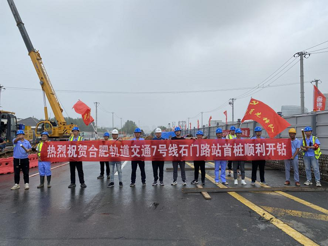 6月28日上午8点18分,合肥市轨道交通7号线一工区石门路站主体围护桩首桩顺利开钻,标志着该站点正式进入车站主体施工阶段。