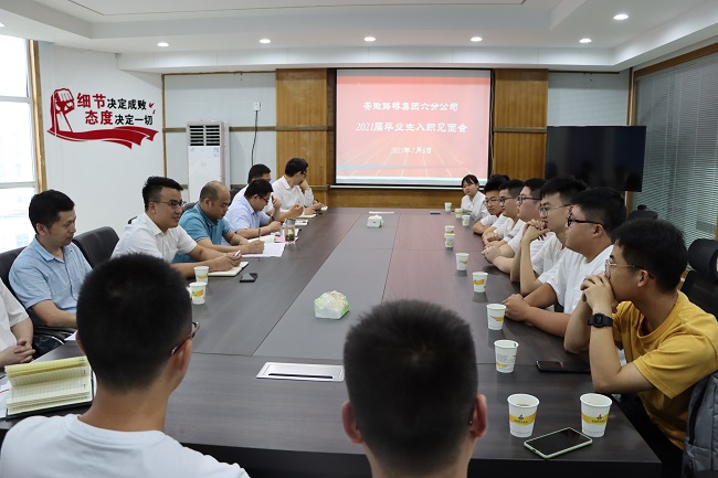 7月6日晚上,六分公司会议室气氛热烈,13名2021届毕业生来到六分公司报到,分公司领导班子、机关各部门参加了此次新员工入职见面会。