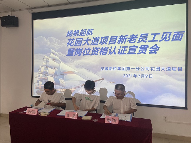 在花园大道项目新老员工见面会上,还对项目5名新入职员工成长导师、专业导师进行指定,并现场签订师带徒协议。以期通过导师们的“传、帮、带”作用,将技术知识、工作经验传授给新员工,形成项目上的“比学赶帮超”热潮,引导新入职员工尽早适应新的工作岗位,提高专业素养,以适应公司发展需要。