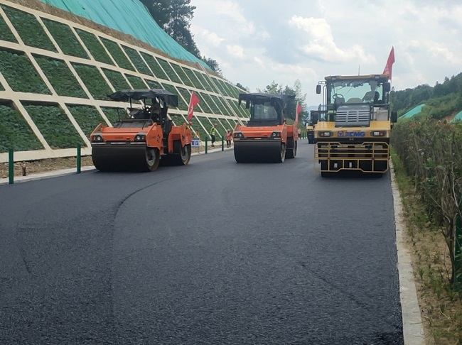 此次沥青中层试验段摊铺工作的顺利完成,极大地鼓舞了项目部全体员工,促进了“学党史、保安康、抢工期、争一流”劳动竞赛的大干热潮,为下一步中面层大面积施工、抢抓沥青路面施工进度奠定了基础。项目部全体员工将铆足干劲,与时间赛跑,坚决执行“县县通高速”攻坚要求,向2021年年底通车目标发起冲刺。