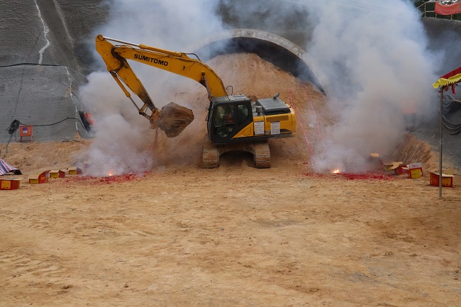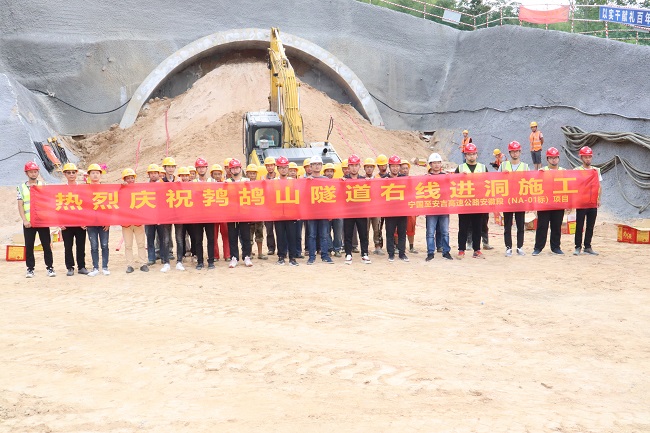 7月20日上午9时58分,伴随着鞭炮声和机器轰鸣声,宁安高速鹁鸪山隧道右线正式进入暗洞施工,标志着鹁鸪山隧道施工取得突破性进展。