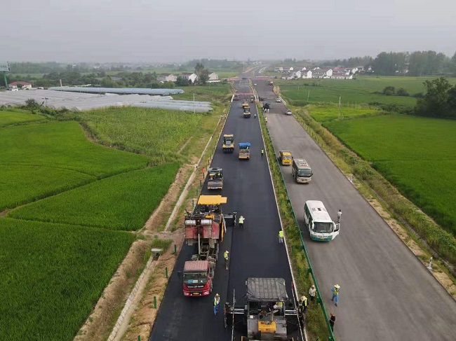 庆建党百年,树全线标杆。时值“学党史、保安康、抢工期、争一流”劳动竞赛大干之际,8月7日上午,S244罗岗至分路口公路工程02标顺利完成全线首个沥青上面层试验段摊铺,标志着六安S244项目正式进入沥青上面层施工阶段,朝着完工通车的目标全力冲刺。