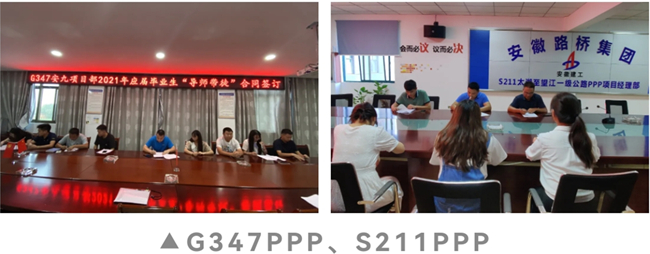 签约仪式上,G347PPP、S211PPP、滁天高速04标等项目宣贯了《安徽省路桥工程集团有限责任公司导师带徒活动实施办法》等文件内容,15位新入职大学生挑选了自己的专业导师和成长导师,并签署了“导师带徒”合同书。