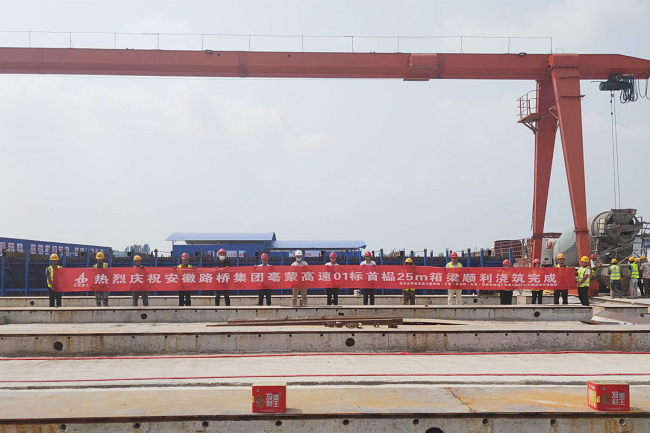 8月18日上午10时18分,亳蒙高速01标项目首片箱梁浇筑成功,拉开了预制梁工作的序幕。
