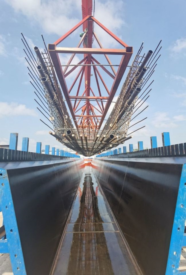 为了确保首梁顺利浇筑,项目部在浇筑前召开专题会议进行详细的安全技术交底,将各项工序细节责任到人,力求严丝合缝不出差错。为保证在计划时间内一次性完成任务,项目部还组织相关技术人员对施工准备、机具进行了检查和调试。项目部领导、现场技术人员、试验检测人员及监理人员全程监督,高标准、严要求,为首片箱梁的浇筑提供了有力的技术保障。