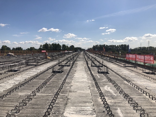自4月25日首片箱梁成功预制以来,项目部精心统筹规划,围绕节点目标任务,严格按图施工,在施工过程中,不断优化施工工序间的搭接,通过首件制和总结,规范每片梁板的钢筋制作、模板安装、混凝土浇筑、养生、张拉等施工工艺。面对8月份强降雨等不利因素影响,项目全体员工顶住节点压力,克服各种困难,采取增加炮车数量连夜导梁,成立“24小时”梁板安装技术服务小组等有效措施,最终按照915既定节点保质保量保安全完成了全部箱梁架设。