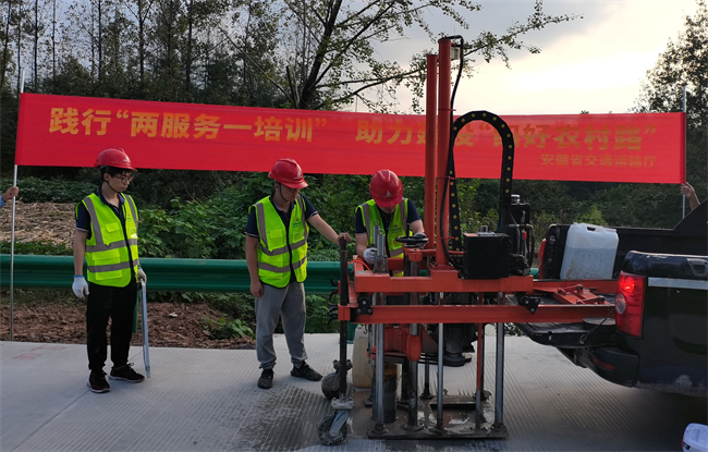 由安徽省交通运输厅组织、安徽省交通工程质量安全管理服务中心开展的农村公路建设质量“两服务一培训”志愿帮扶现场技术服务培训及座谈会于9月9日-10日在六安市金寨县、霍山县如火如荼举行。此次活动旨在深入贯彻落实习近平总书记关于“四好农村路”建设重要指示精神,助力省内“四好农村路”建设,巩固脱贫攻坚成果。经省交通运输厅综合考评,安徽路桥集团下属的检测公司在诸多检测机构中脱颖而出,成为本次志愿帮扶工作的承办机构。