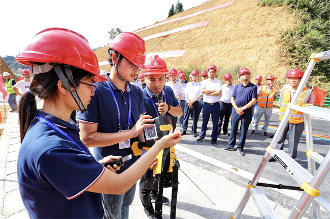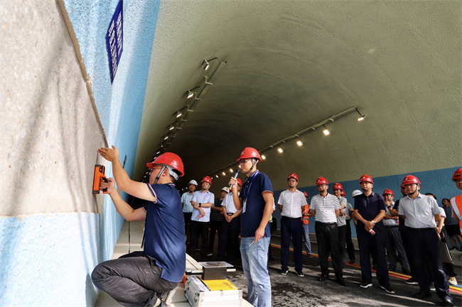 9月9日,现场技术服务培训在金寨县鲜花岭隧道举行。安徽省交通运输厅建设管理处处长杨菲铃,安徽省交通工程质量安全管理服务中心党委书记、主任沈群,党委委员、副主任高学华,综合管理处副处长赵文好,六安市交通建设工程质量监督处处长郑兆宇,副处长王胜;安徽路桥集团总经理助理、安徽省路桥试验检测有限公司党总支书记、董事长卞宝林,六安市各县(区)交通运输局分管领导莅临现场指导。检测公司专业检测人员对交通标志逆反射系数、标志板净空高度、标线逆反射系数、隧道回弹、钢筋保护层厚度、钢筋间距等几个关键性指标进行现场技术服务及培训。通过专业检测及实操培训,帮助县级农路监管人员提升质量检测技能,加强监管水平和监管能力。
