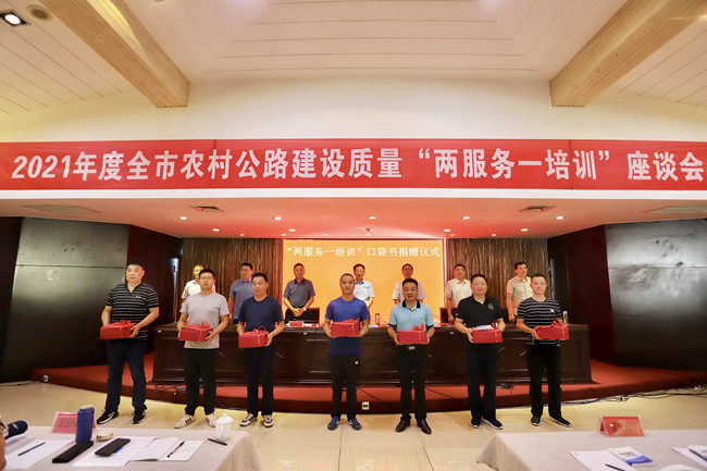 座谈会于9月10日在霍山县召开,会上举行了赠书仪式和知识培训。安徽省交通运输厅向六安市各七个县(区)赠送了书刊,其中由安徽路桥集团检测公司编制的《安徽省农村公路建设质量检测培训手册》1000本免费赠送给六安市各区县公路质量监督单位;由安徽路桥集团检测公司2位专业检测人员结合日常工作检查中发现的工程质量通病、检测过程中的注意事项,有针对性的为与会人员讲解了路基路面、交通安全设施和桥梁工程检测技术和质量管理要点。会上还播放了8个《交通安全设施试验检测培训视频》。