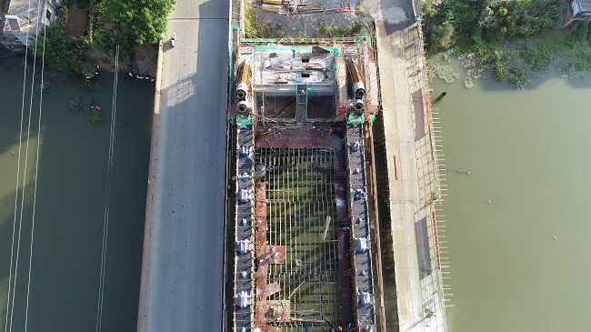 10月3日,华阳河大桥主桥现浇梁纵梁第一段混凝土浇筑完毕。