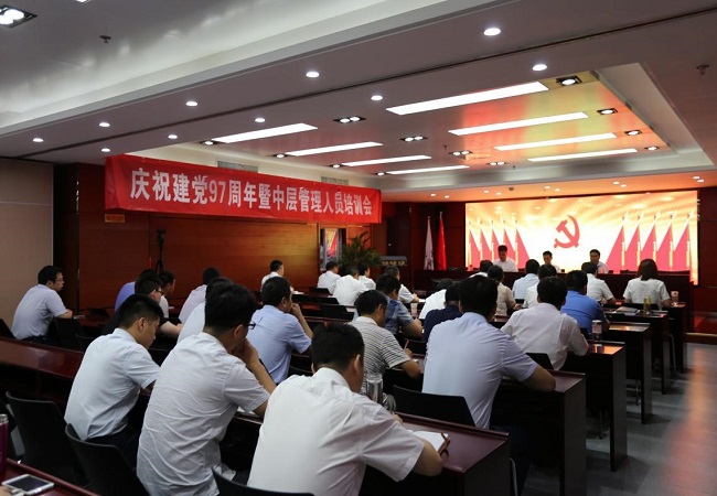 7月5日上午,公司召开庆祝建党97周年暨七一表彰大会。纪念建党97周年,表彰一年来公司涌现出的先进基层党组织、优秀共产党员、优秀党务工作者,激励各级党组织和广大党员为公司加快发展再立新功,公司党委委员、董事、副总经理欧阳志宜主持会议并宣读“一先两优”表彰决定。党委书记、董事长、总经理盛明宏出席会议并作了《让典型引路,充分发挥示范引领作用》的党课报告,党委委员、纪委书记、工会主席王胜利结合集团公司开展的大宣讲活动作党建工作报告。