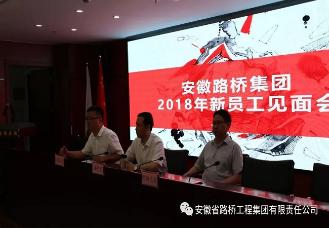 7月4日上午9点,安徽路桥集团2018年新员工见面会在安建国际8楼会议室举行。公司党委书记、董事长、总经理盛明宏,公司党委委员、董事、副总经理欧阳志宜,公司党委委员、纪委书记、工会主席王胜利出席会议,新员工、总部及分子公司党群人力部门员工欢聚一堂,见面、交流,学习,共勉。