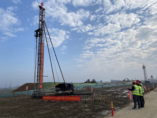 合庐产业新城项目2标段位于安徽庐江台湾农民创业园,龙桥路(牛金路-星夜大道)段建设工程西起牛金路,东至星夜大道,位于合庐产业新城核心区,长度3028.058米,规划红线宽度45米,规划等级为城市主干路,主要工程量包含:道路、交通、桥涵、照片、管线综合,其中水泥搅拌桩数量为123471根,总长958854米,本次试桩施工的位置为龙桥路K0+038左幅机动车道0-1659至0-1665。