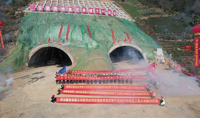 2021年12月29日上午,随着最后一个支护循环顺利完成,黄千高速HQTJ-02标最后一座隧道——方村隧道左线顺利实现出洞,标志着黄千高速02标所有隧道全部贯通。